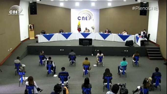 La sesión se cumplió ayer presencialmente, con las sillas vacías de los vocales Luis Verdesoto y Enrique Pita, quienes no justificaron su ausencia, según el área de comunicación del CNE.