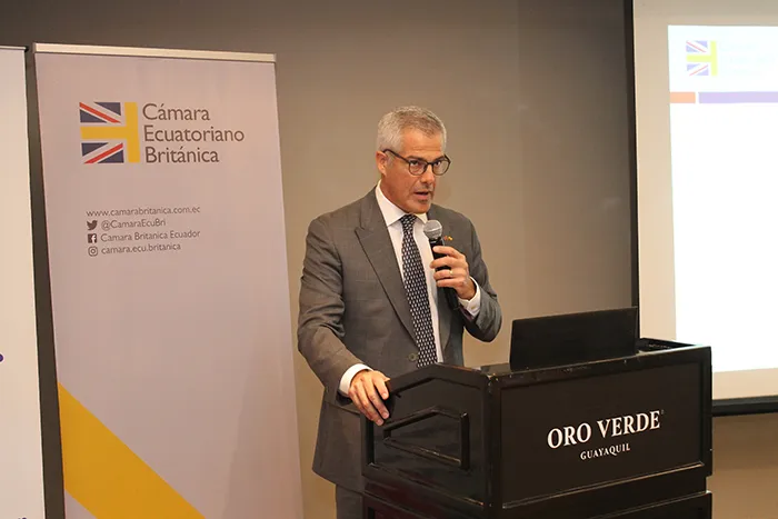 Nicholas Armstrong, Presidente del Directorio de la Cámara Ecuatoriano Británica dio la bienvenida a los asistentes y dio por iniciado el Conversatorio.